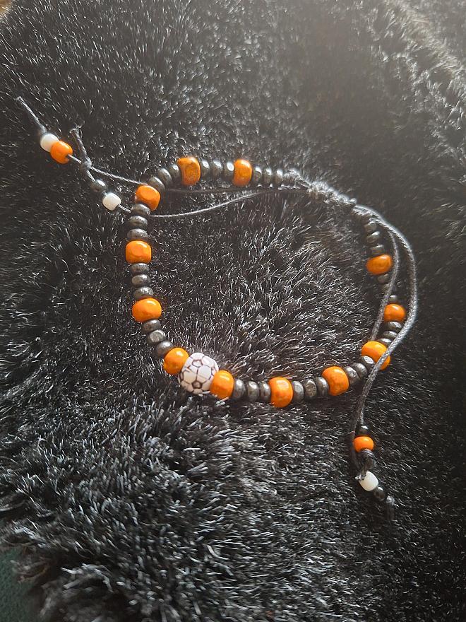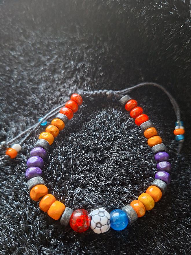 herenarmband voetbal oranje zwart hout