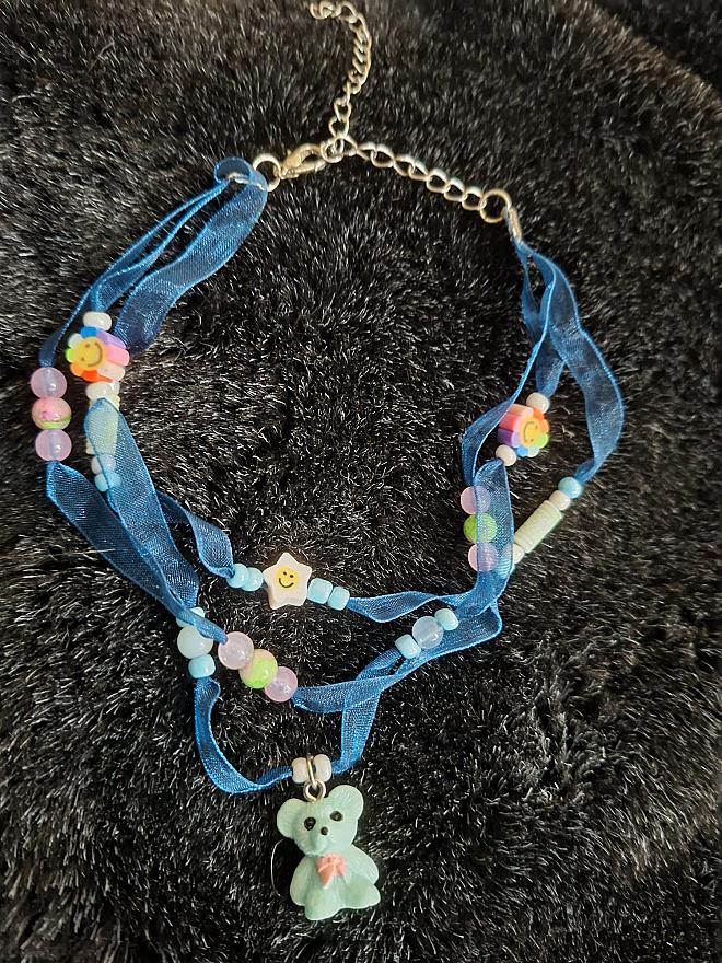 blauw beertje op organza